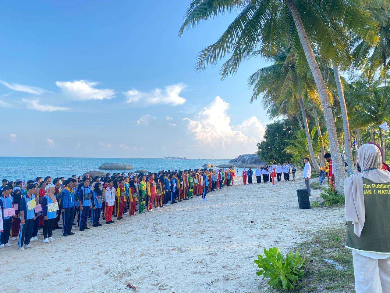 natuna 11 oktober 2025, pelang merah remaja dari seluruh sekolah sebunguran kabupaten natuna, melaksanakan pelantikan gabungan yang berlangsung d...